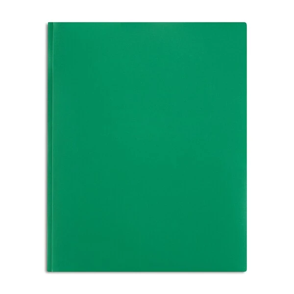 Keep organized and get ready for back to school with the Staples green 2-pocket poly portfolio. Made from durable poly material, this folder helps you organize letter-sized documents and has a convenient fastener to keep everything in place. Available in a variety of colors to match your style!