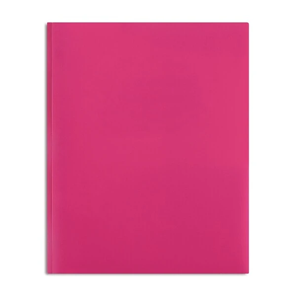 Keep organized and get ready for back to school with the Staples pink 2-pocket poly portfolio. Made from durable poly material, this folder helps you organize letter-sized documents and has a convenient fastener to keep everything in place. Available in a variety of colors to match your style!