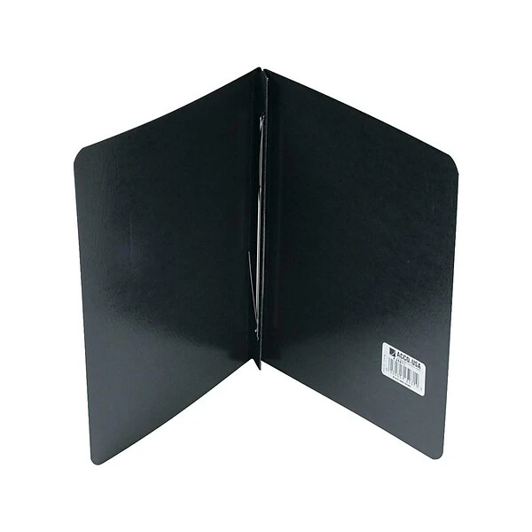 Page through documents effortlessly when you file them in this black report cover. The three sturdy prongs hold paper securely in place, while the PRESSTEX cover resists moisture to keep pages safe from damage. This ACCO report cover features a leather-embossed finish for a professional appearance.