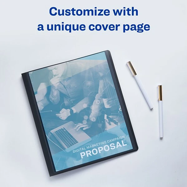 - Personalizing your report cover is made easy as the clear front window allows you to slip in your own customized title page