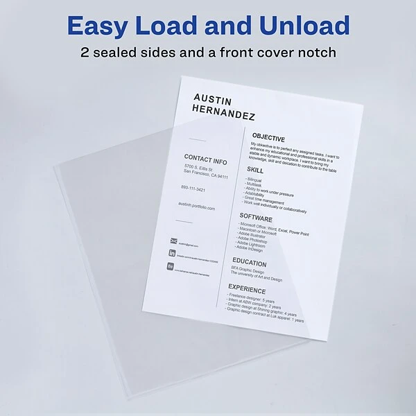 Manage paperwork organization with a 12 pack of these thumb-notched clear plastic sleeves. These letter-sized plastic sleeves are ideal to keep documents free from damage. The see-through front and convenient thumb notch of these Avery sleeves allow users to grasp papers quickly in order to remove them.