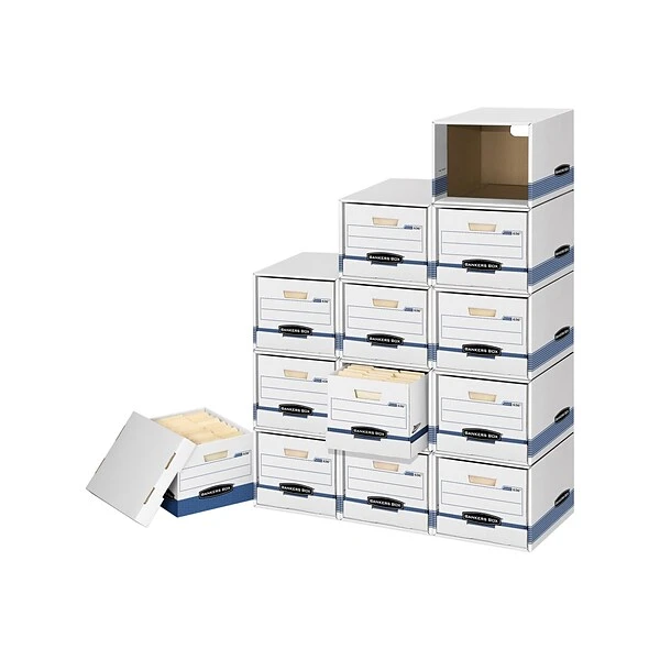 Keeps important files easily accessible while in storage with this file/cube box shells. Each one features modular shells with steel supports, letting it stack up to five units high, reducing the amount of required floor space. These Bankers Box shells accommodate legal-size and letter-size file boxes and are easy to set up, and they fit securely together vertically and horizontally for enhanced stability. File boxes sold separately.