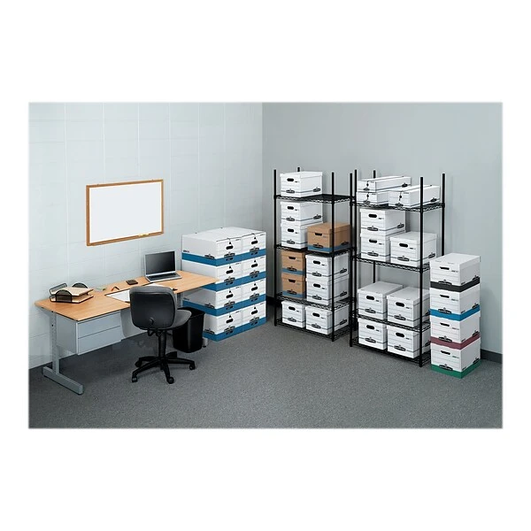 Minimize clutter in your home, classroom or office with these letter-size storage boxes. With an easy one-step setup, these boxes offer quick, simple assembly. The reinforced plastic handles let you transport and remove these boxes from shelves. These Bankers Box Liberty heavy-duty storage boxes have an 750-pound stacking strength and feature string-and button closures, keeping contents protected and secure.