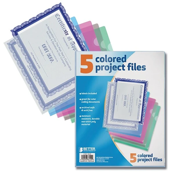 Project Files by Better Office Products offers a convenient solution for organizing your documents. These project files are non-stick and non-toxic which come in a pack of 5.