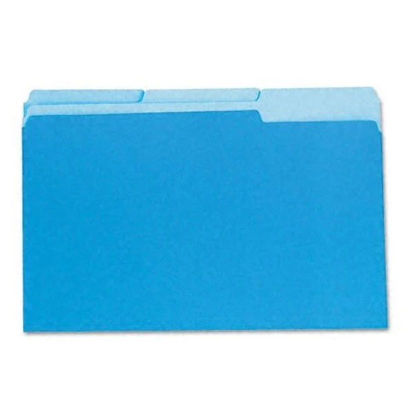 Pendaflex 1/3 Cut file folder in blue features a bright exterior color and a lighter shade interior to reduce misfiling. Folder has single-ply tabs in assorted 1/3 cut positions.