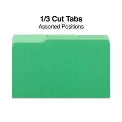 Quill Brand® File Folders, Assorted Tabs, 1/3-Cut, Letter Size, Green, 100/Box (740913BGR)