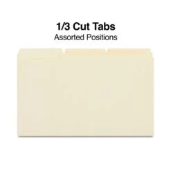 Quill Brand® 2-Ply File Folders, Assorted Tabs, 1/3-Cut, Legal Size, Manila, 100/Box (770137)