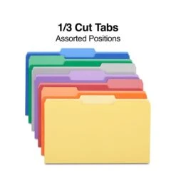 Quill Brand® File Folders, Assorted Tabs, 1/3-Cut, Legal, Assorted Colors, 100/Box (741013AD)