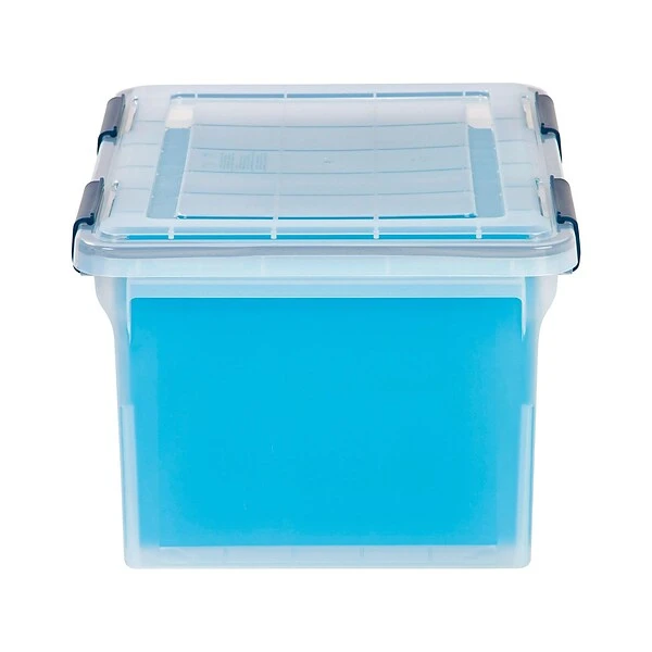 Store file folders neatly away inside this plastic file box. The snap-shut lid keeps dirt and dust away, while the clear construction lets you view the contents inside. A reinforced lid makes it easy to stack multiple units for a space-saving storage option. This Iris Ultimate file box accommodates both letter- and legal-size file folders for added versatility.