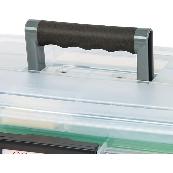 The IRIS® Letter Size Portable WeatherPro File Box (110351) is a durable, protective storage solution for your valuables and important documents. You can secure your pens, business cards and filing essentials in the built-in organizer lid.