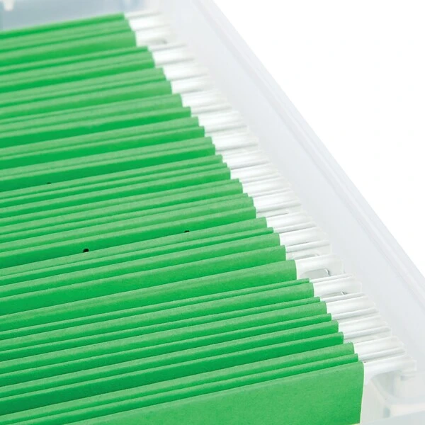 - Holds letter size hanging files