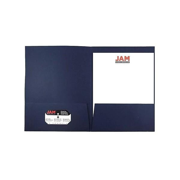 Keep important contracts, portfolios, and other paperwork organized with these presentation folders. The linen finish and navy color deliver a sophisticated appearance, while the durable cardstock material adds enhanced sturdiness. These JAM Paper navy blue linen presentation folders feature two pockets, providing ample amounts of space to contain documents.