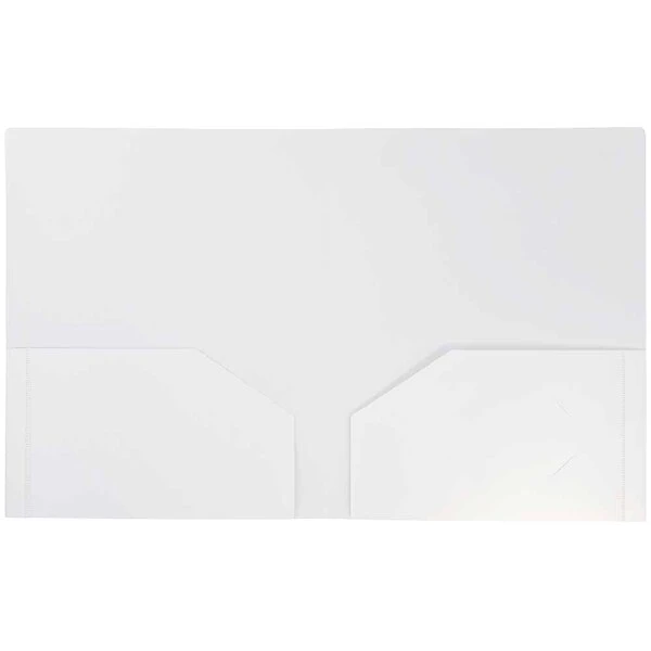JAM Paper® White Heavy Duty Plastic Two Pocket Presentation Folders are 9 1/2 x 11 5/8 inches in size and feature two inner pockets. The right-side pocket features a slot for holding displaying business cards, brochures and more! This pack contains a total of 6 folders for any of your documents organization needs. The plain white color of these folders make them appropriate for any setting or scenario. Each one fits up to 20 standard sized documents! Use them to keep documents in drawers or on shelves or to transport documents safely from place to place in briefcases, backpacks, or bags.