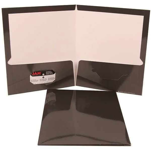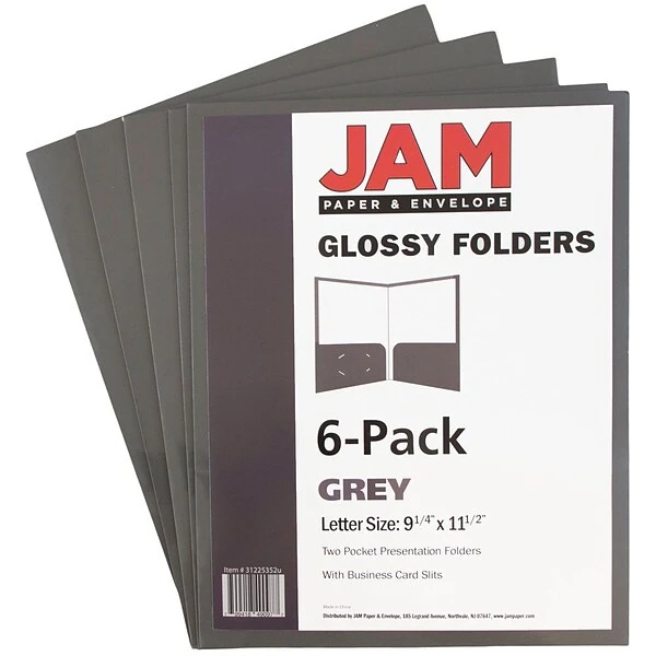The sky is overcast, stoic and somber, bringing to mind the black and white, grayscale photographs of the ancestors you never knew. Enter these majestic grey folders. JAM Paper® Grey Glossy Two Pocket Presentation Folders will help you in your daily work to carry on that legacy your past relatives left behind. These folders are made of durable 100lb cardstock and measure 9 x 12 inches when closed, making them great for standard sized sheets of paper. This pack contains a total of 6 folders! Each one features two convenient pockets on the inside for keeping documents secure and organized. A business card slot is featured within the surface of the left side pocket. Each folder features a smooth, glossy grey finish. Use them in the office or for school and make your ancestors proud.