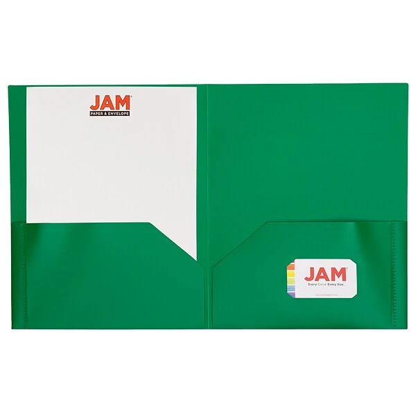 JAM Paper Plastic Folders allow you to have a sturdy folder while still being environmentally conscious. These folders are perfect for helping you stay organized at school, the office, home, or on the go. Measuring 9.5 x 11 (9 1/2 x 11) inches, these folders include 2 pockets designed to keep your documents secure and organized and also have an additional business card slot built into the right side pocket.