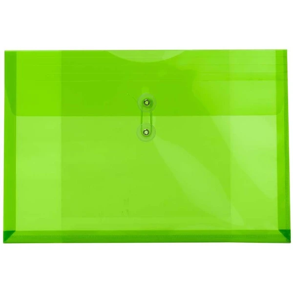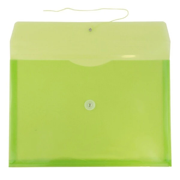 JAM Paper® Lime Green Legal Sized Plastic Envelopes with Button and String Tie Closures are perfect for storing and protecting larger or longer documents! Each one is made of pliable yet durable plastic, had a straight flap opening and features a two button string tie closure. These envelopes feature a zesty lime green color and a smooth, slightly transparent surface. This combination gives your stored documents a splash of bright color while still allowing you to view them from the outside, making it easy for you find them quickly and easily! These envelopes are about 10 x 14 inches in size and come in packs of 12. Use these envelopes, at work, home, or school to protect documents from scratches, bends, and dents!
