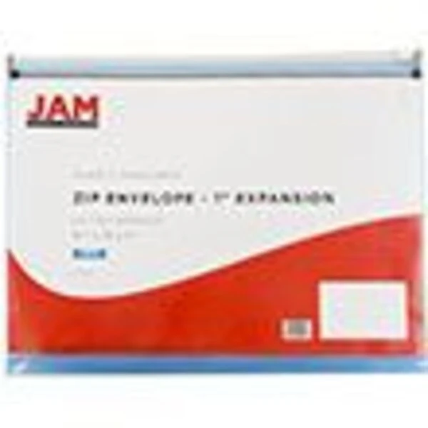 JAM Paper® Blue Letter Booklet Sized Plastic Envelopes with Zipper Closures are 9.75 x 13 inches in size and are sold in packs of 12. Each envelope features a plastic zipper closure with metal ends for fast and reliable opening and closing. The semi translucent, pliable and durable plastic that these envelopes are made of protects your stored documents against scratches, bending, tearing, stains and other damage. They are perfect for storing standard sized documents in an office or workspace, or for keeping them safe on the go. Their sky blue color adds a subtly expressive accent to your office supply collection. Stay organized, and keep your documents clean, crisp and secure with these blue envelopes!