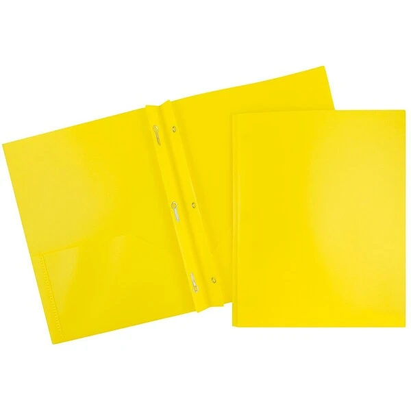JAM Paper® Two Pocket Plastic Folders with Clasps allow you to have a sturdy folder while still being environmentally conscious. This assorted pack includes six of our most popular color metal prong folders: Blue, Orange, Purple, Lime Green, Yellow and Pink. These folders are perfect for helping you stay organized at school, the office, home, or on the go. Measuring 9.5 x 11.5 (9 1/2 x 11.5) inches, they include 2 pockets designed to keep your documents secure and organized and also have an additional business card slot built into the right side pocket. Folders also have three clasp closures inside, making these folders more durable, secure, and allowing you to store 3 hole punched materials. A great folder for business professionals, students, teachers, or anyone else looking for quality plastic folders.