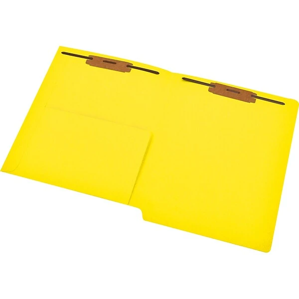 - Has double-thickness, full-cut end tabs and two 2″ fasteners on side of folder