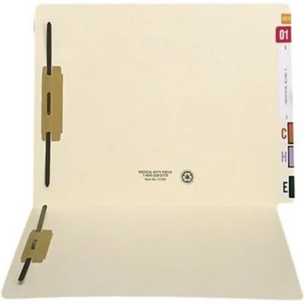 Improve your filing system with these 11-point fastener folders. The assorted tab positions make viewing multiple labels at the same time simple, while the two fasteners let you subdivide documents as needed. These Medical Arts Press folders feature reinforced tabs for the durability needed to withstand wear and tear, while the 11-point stock material provides protection against dirt, rips, and other damage.