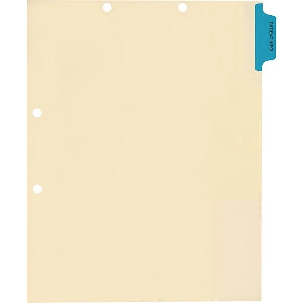 - Color side tab chart dividers with 2-hole punch save time with quick access to patient information