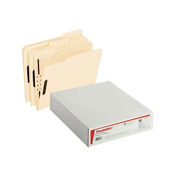 Organize paperwork, business documents, and important information with these manila folders. The 2-inch fasteners let you subdivide documents and hold them securely, helping you organize each folder, while 1/3-cut tabs mean you can add labels for quick identification. These Pendaflex letter-size manila fastener folders come in a pack of 50, so you can tackle large filing projects.