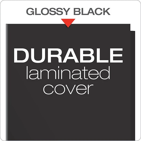 - Laminated folders are made of high-quality glossy black paper stock for extra durability