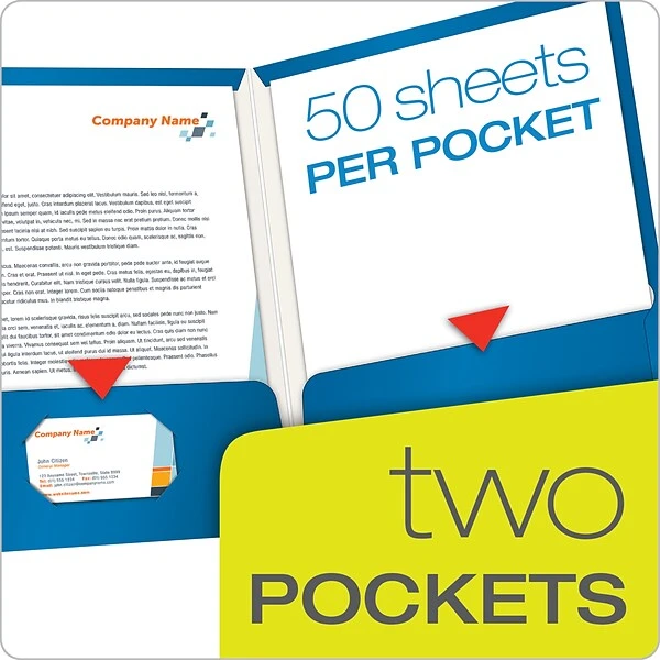 - Laminated folders are made of high-quality glossy blue paper stock for extra durability