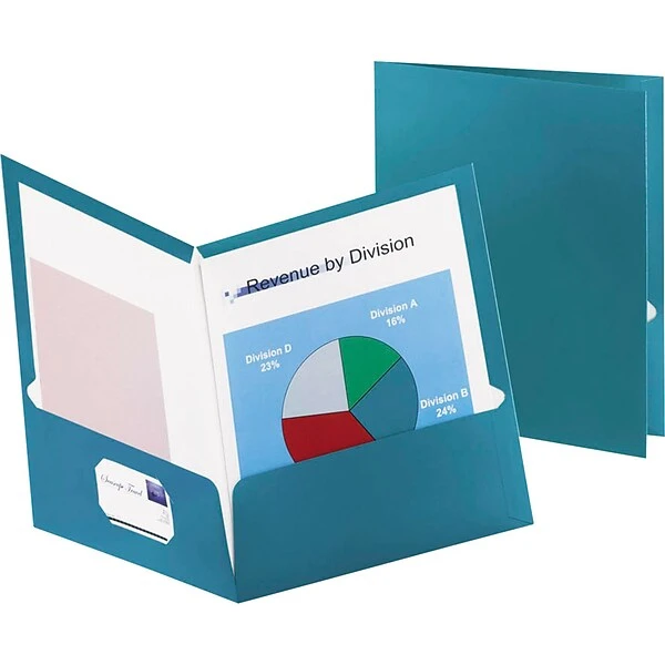 Vibrant metallic colored folders get noticed! Features a die-cut business card slot on inside front pocket for convenient contact information. For 11″ x 8 1/2″ sheets. This product was made from wood that came from a certified managed forest.