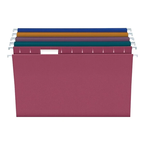 Group client or account files together with these Pendaflex hanging file folders. The assorted hues let you color-code your filing system to make important paperwork easy to find. Each folder features hooks, which move smoothly across hanging folder glides. With five tab positions, these Pendaflex hanging file folders offer convenient and flexible labeling options.