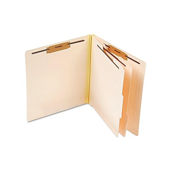Organize client, vendor, or patient documents into separate categories with these Pendaflex pressboard end-tab letter-size classification manila file folders. The 14-point stock offers durability and resilience, while the two-tab fasteners on each section keep papers securely filed away. With two partitions and six filing sections, these Pendaflex pressboard end-tab letter-size classification manila file folders provide flexible options for sorting forms, reports, and invoices.