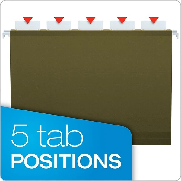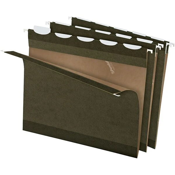Pendaflex Ready-Tab reinforced hanging folders guard your important business documents against damage while maintaining organization. Reinforced holes at the top and bottom of these standard-size green folders provide extra durability.