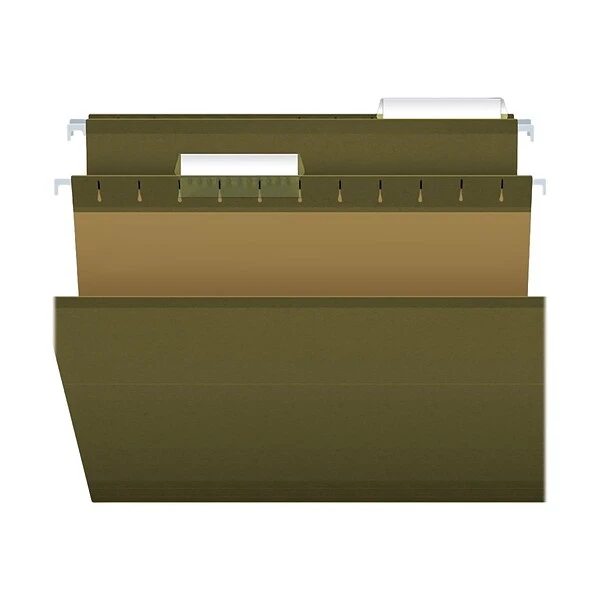 Organize documents with these hanging file folders. These folders feature special strips on their edges to guard against tearing. The interiors of these folders have a lighter color than their exteriors, which helps prevent documents from being misfiled. Each box of Pendaflex reinforced hanging file folders comes with a label sheet and tabs to help users separate their items.
