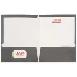 JAM Paper® Laminated Two-Pocket Glossy Presentation Folders, Grey, 6/Pack (31225352U)