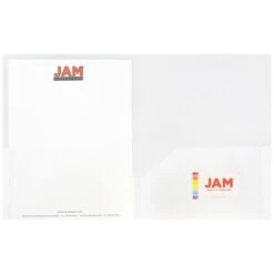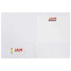 JAM Paper® Laminated Two-Pocket Glossy Presentation Folders, White, 6/Pack (103489D)
