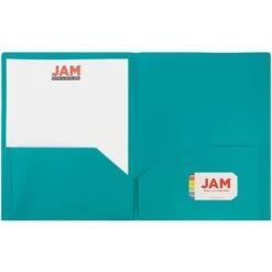 JAM Paper® Plastic Two-Pocket School POP Folders, Teal, 6/Pack (382Eted)