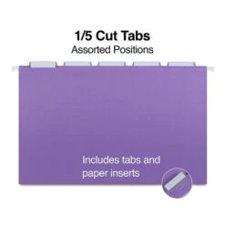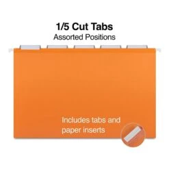 Staples Heavy Duty Hanging File Folders, 5-Tab, Letter Size, Assorted Colors, 25/Box (TR875411)