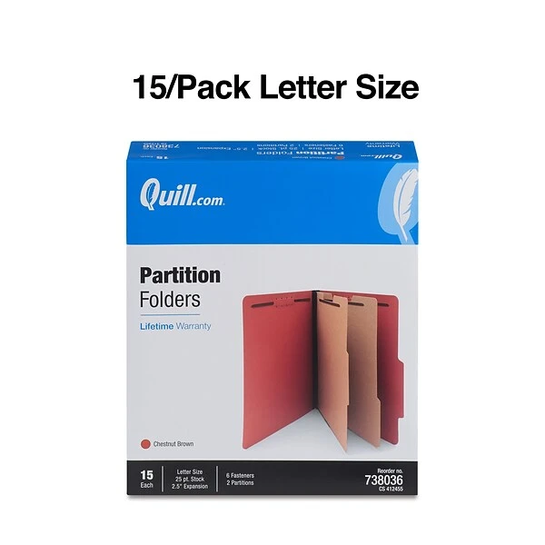 - Brown 25 pt. pressboard folders with two partitions
