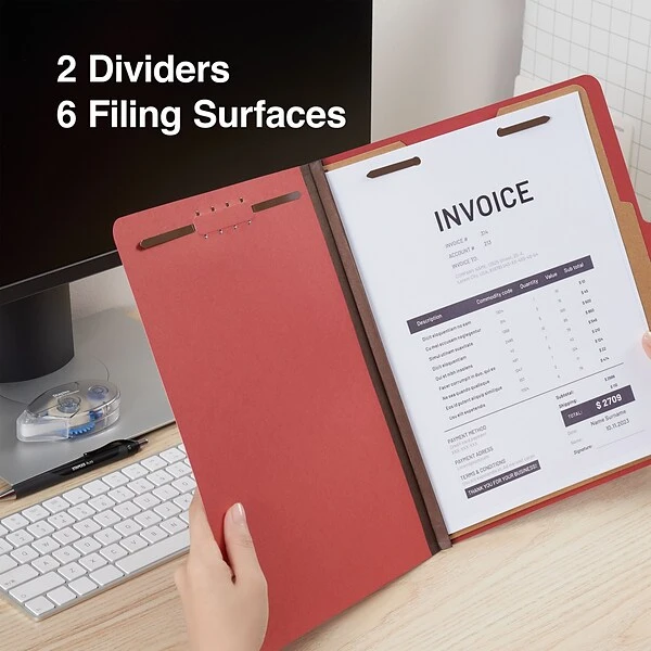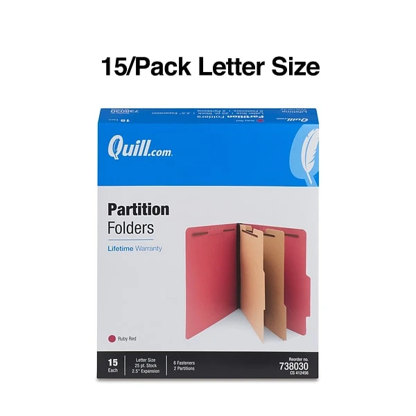 - Red 25 pt. pressboard folders with two partitions