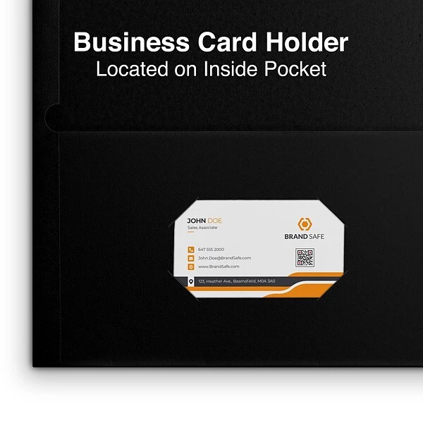 - Quill Brand® 2-pocket folders include a die-cut business card holder