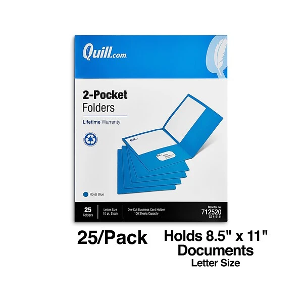 Quill Brand® 2-Pocket Folders, Blue, 25/Box (712520)