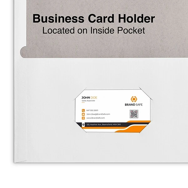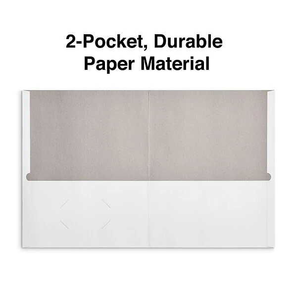 - Quill Brand® 2-pocket folders include a die-cut business card holder