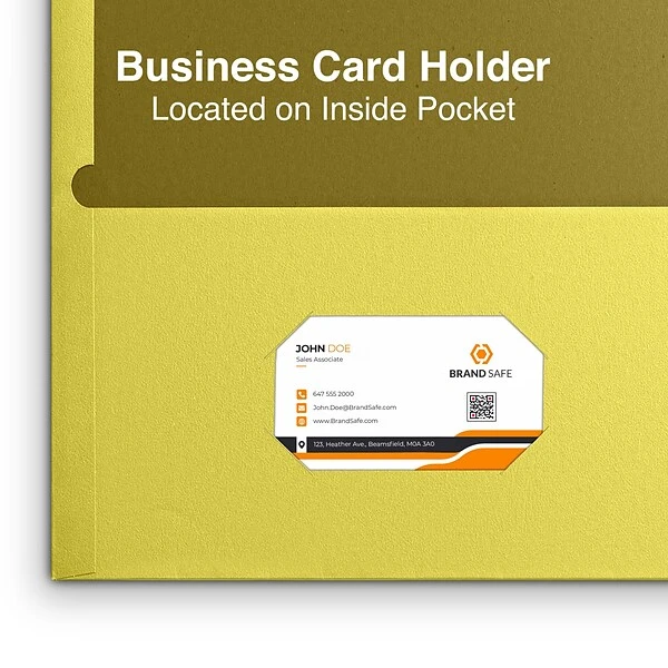 - Quill Brand® 2-pocket folders include a die-cut business card holder