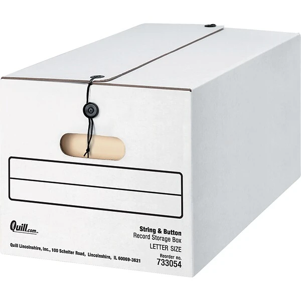 - String & button closure keeps contents secure even if box is overturned