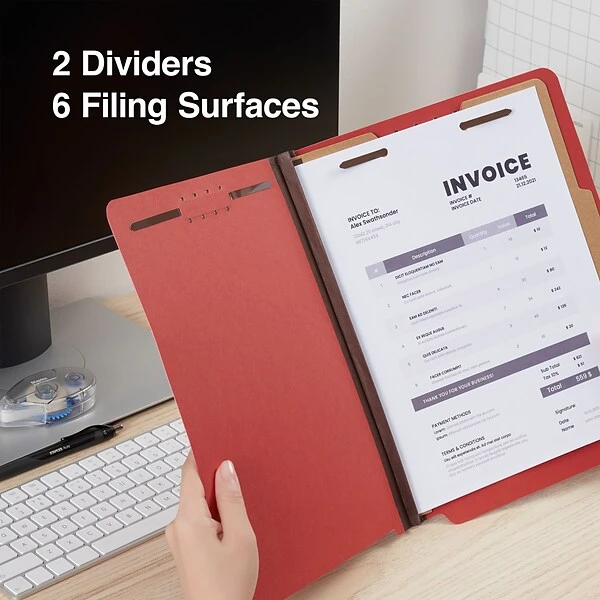 - Six 2″ capacity fasteners on covers and 1″ capacity twin prong fasteners on partitions
