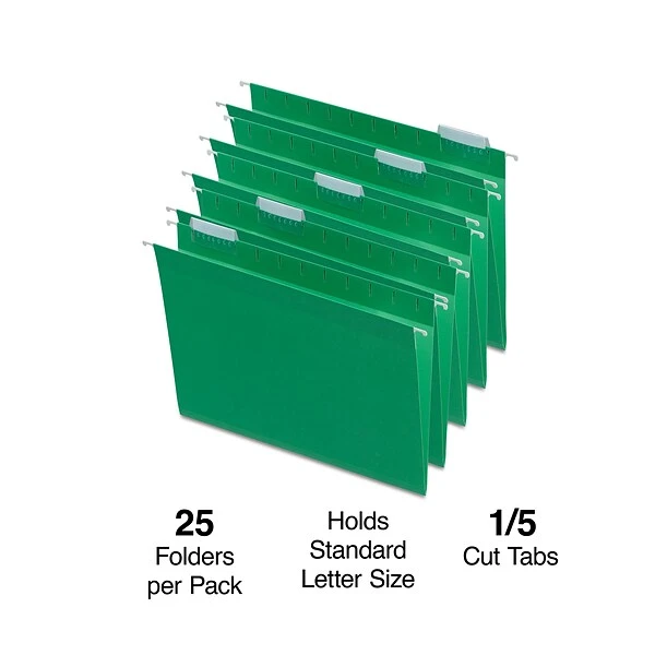 Update your filing system with these durable Quill Brand colored hanging file folders. Use the folders for long-term storage — the acid-free material helps prevent paper degradation. Each box comes with 25 folders, so you can stock a supply shelf or distribute folders among individual offices.