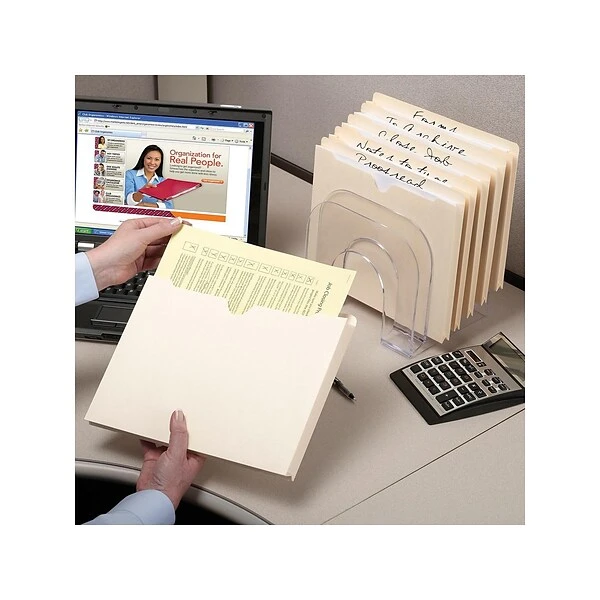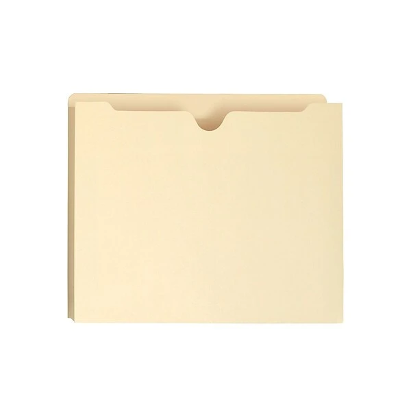 Collect important documents inside these manila file jackets. The reinforced straight-cut tabs offer abundant space for labels and resist ripping and tearing, making these jackets ideal for filing frequently referenced papers. Closures on three sides prevent pages from slipping out, and the thumb-cut fronts offer easy access to your items. With an expandable design, these Smead letter-size file jackets hold thick stacks of paperwork.