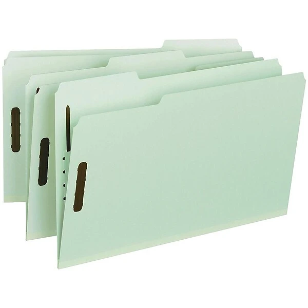 Declutter your file cabinets and shelves with these legal fastener folders. Each box comes with 25 gray/green folders that conveniently expand up to 1″ to hold bulky files. The 2K style fasteners sturdily clasp paperwork for quick review when needed. These Smead legal 1/3-cut fastener folders with 1-inch expansion are ideal for real estate transactions, legal forms or other ordered large documents.