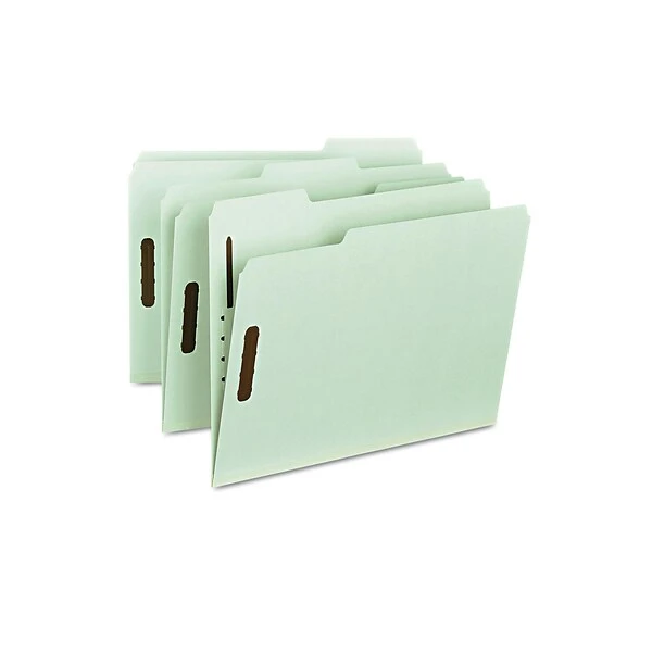 Organize documents with these Smead fastener letter-size file folders. The wide tabs in assorted positions allow for easy labeling, while the interior fasteners keep documents securely in place. Each folder expands up to 1 inch, providing ample storage space for large stacks of paperwork. Featuring sturdy pressboard construction, these Smead fastener letter-size file folders stand up to frequent wear and tear.