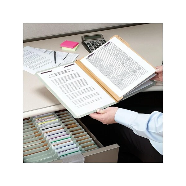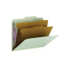 - Gray/green 25 pt. pressboard cover with two kraft dividers